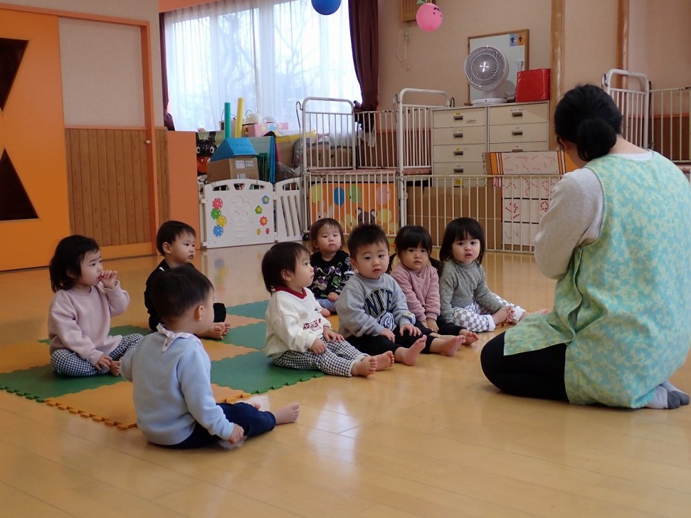 先生が絵本を持ってくると、みんな集まって座れるようになってきました!じっと見つめたり声掛けに合わせて反応してくれるつくし組のお友達(*^^*)だるまさんやアンパンマンのお話がお気に入りですが、最近は『鬼のパンツ』の歌の絵本で盛り上がっています!