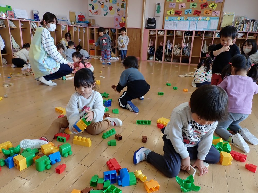 お姉さん先生が来てジャングルブロックを出して遊びました。