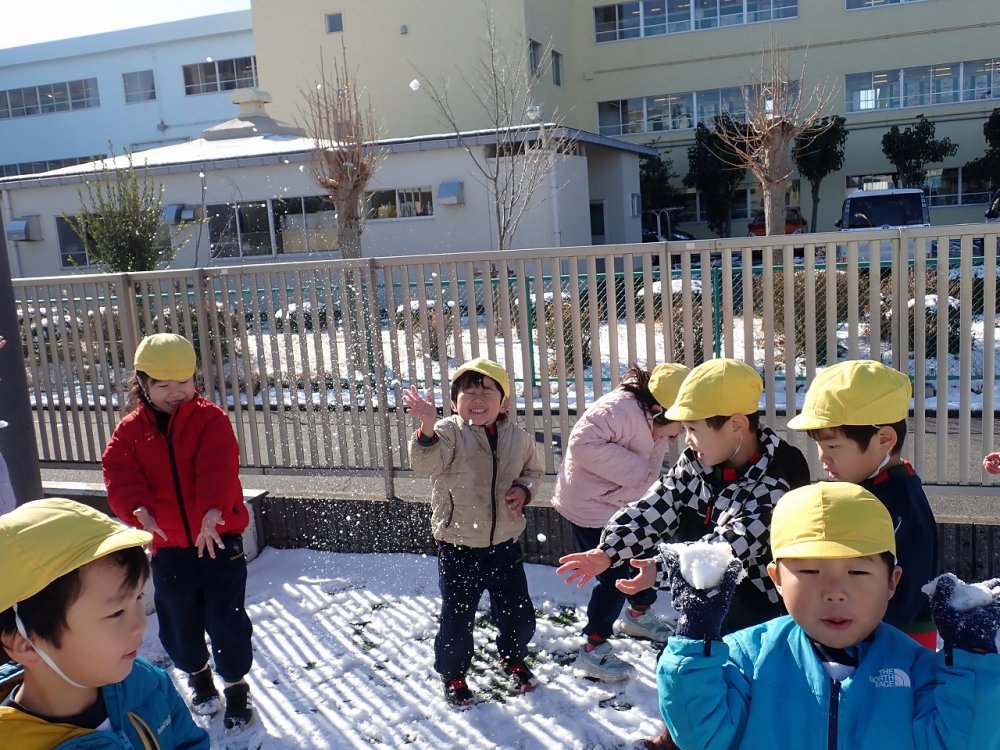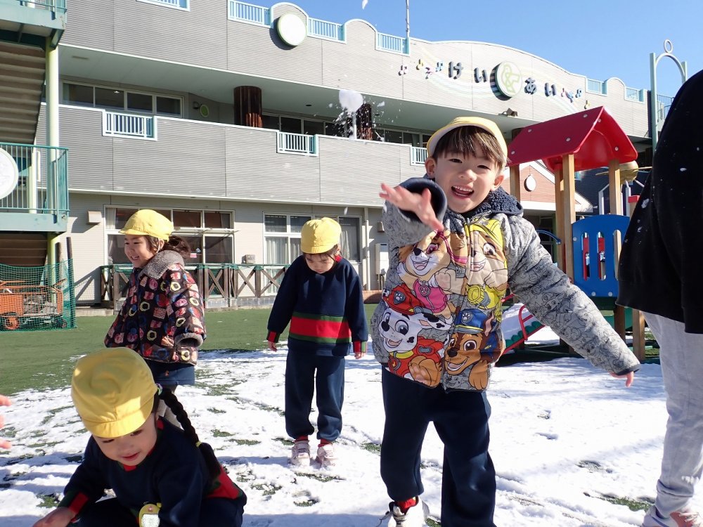 冷たい雪をみんなで投げ合い冬の自然を身近に感じました。