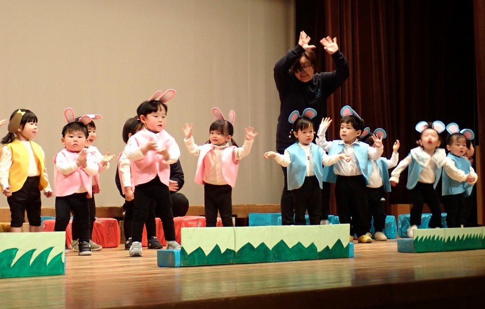 初めての保育発表会。いつもと違う雰囲気に不安を見せたお友達もいましたが